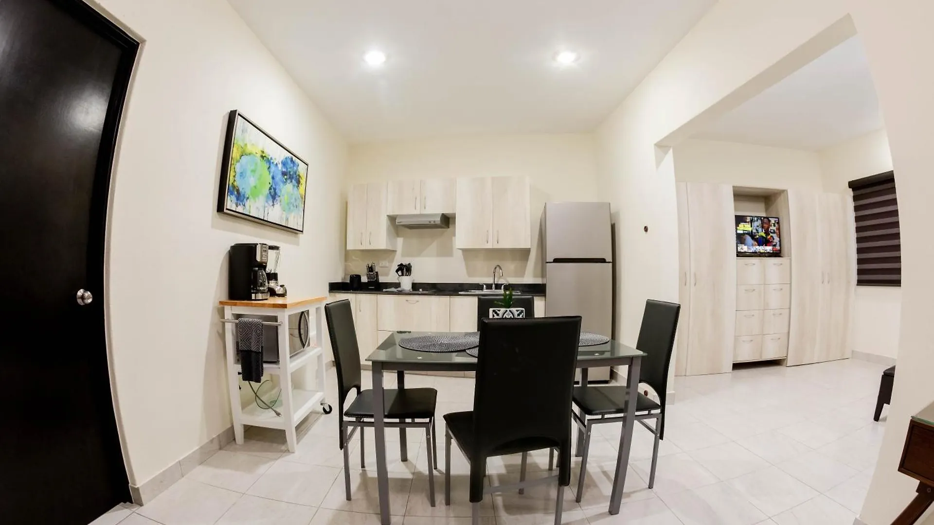 Es gibt eine Mikrowelle, einen Kühlschrank und Küchenutensilien in einer Küche. Gäste können die mexikanische Küche im 300 Meter entfernten Restaurant El Mexicano genießen. Die Unterkunft ist relativ nah an der Bushaltestelle Terminal "La paz".